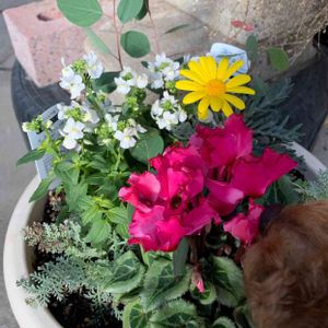 🐾🐩公園でワン友さんに会いました。 その方も植物が大好きなのです♡ 「ウチの寄せ植え見て行って~~~」と 言われたので帰りに寄らせて頂きました 町内会の寄せ植え教室に参加したそうです。 これで500円。他にも花や材料の販売を していたそうです。 講師は花屋さん( *´ω`* )/ 来年は是非私も!と思いました(*゚▽゚)ノ