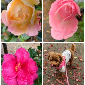おはようございます٩(*´꒳`*)۶ 今朝はポツポツ雨なので🐾🐩ご近所お散歩です。 上の段は近所の自宅レストランの薔薇🌹✨ 下は自宅前の公園♡♡