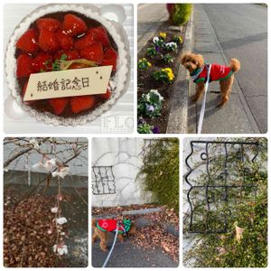 主が仕事帰りに(*´˘`*)🎂⊂(´˘`๑)"ケーキを 買って来てくれたよ(*>ω<*)b 今日は桜を見付けたの。ビックリ( °д° ノ )ノ