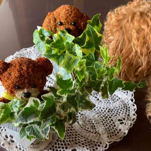 今日のお花❁⃘*.゚ 色違いの斑入りのアイビーです(´∀`*) 最初に買ったのはトイプーの方で去年の12月に。 サンタの帽子を被ってる🐩姿が可愛くて♡ お値段は1580円ぐらいだったかな~ 🐻くまさんはお正月過ぎに行ったら300円に 値下げされていました٩(>ω<*)وラッキー♡ 地植えしたら増えそうなので…^^; このままの状態を保たせたいと思っています。 これぐらいが可愛い~です(≧∇≦*)