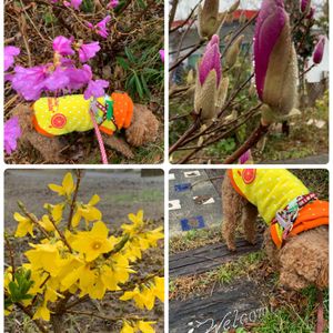 ╰( U ・ᴥ・)m 冷たい小雨の降る朝のお散歩🐩 いつもの近所の園芸店跡地です。 ピンクのモクレンがもうすぐ咲きそう♡
