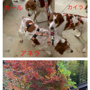 カールくんと同じ犬種🐕ブリタニースパニエルのお友達が遊びに来てくれました😀アネラちゃんは軽井沢で保護された保護犬です😀カールくんとアネラちゃんはおじいちゃん、おばあちゃんでどちらも猟は引退しましたが、カイラちゃんはまだ現役の鳥猟犬🐕です😀ついでに犬舎横の紅葉🍁😅