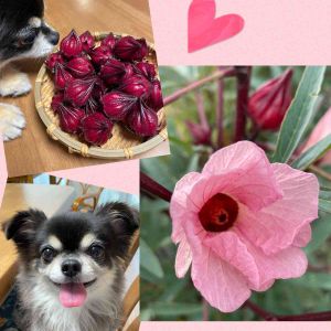 ローゼルのお花が咲いています💕 GSで拝見して私も育ててみました🤗 想像していたより大きく成長して、可愛いお花と沢山の実をつけました❣️ お花はお昼前にはしぼんでしまいます アランもクンクン🐶なんやろ〜? この萼と苞をお茶やジャムにするみたいです☕️ ご存知の方、味の感想などお聞かせください😊🎶 ワンワン祭りに参加します🐶❤️