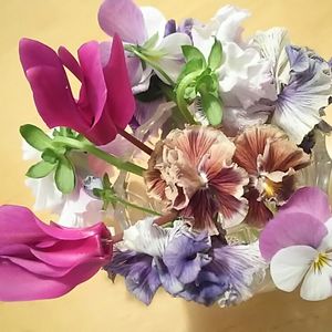 綺麗に咲いてくれて、ピークをちょい過ぎても集めて食卓に。楽しませてくれて有難う、センス無いけど😅