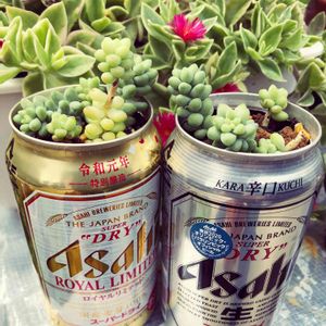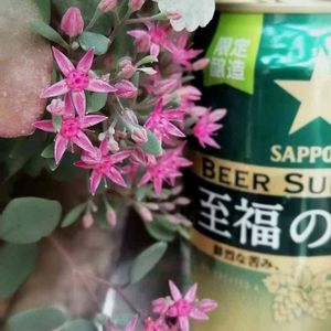 ヒマ過ぎて 花を探すも花見つからず…… 結局、ビールに頼る俺。 そしたら、多肉系?のこの子に会いました☺