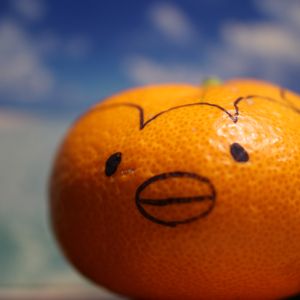 2018.12.4 次女作のみかんアート。 昔、みかんをハロウィンのかぼちゃのように書いたので、もう一度お願いしたら時期ではないのでとカッパを書きました。