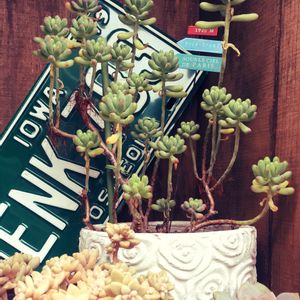 乙女心 うちにある乙女心の親株。 この子からチョンパした子供達が、あちこちで活躍中✨ でもこの子。年中この箱の中にいるので、日当たりがあまりよくなくヒョロヒョロです。 たまには外に出してあげるからね( TДT)ゴメンヨー