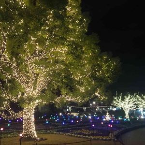こんばんは😃🌃 華蔵寺公園イルミネーション✨✨✨✨✨ 植物がしっかり写っているのはこの一枚だけなんです😅 紅葉した銀杏が幻想的に見えました❗ ここから先はお伽の国のような可愛らしいイルミネーションに童心にかえって楽しんでしまいました😊✨🎶 大人200円、子供100円で 入れます❗これにもビックリ👀❗🎵 しかも自由に歩き回れる🎵ワクワク、ウキウキ、本当に楽しかったわ🎵🎶😊 帰ってきてこのpicを見て観覧車に乗らなかったことをちょっと悔やみました😅 (群馬県)