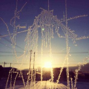 朝日で窓硝子に着いた、氷がキラキラ❄️ クリスマスツリー🎄の様 綺麗❄️❄️