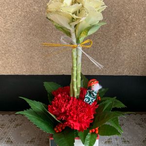 枝垂れ梅の代わりに、鉢植えで実家の玄関に彩りを…。🌼🌸🌟