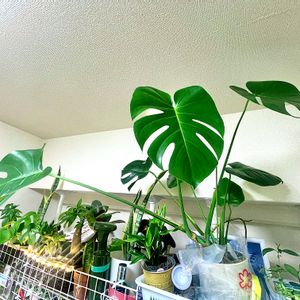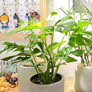 おはようございます☀ ご無沙汰です💦 久しぶりにこちらに遊びに来ました😊 我が家のモンちゃん達です。 班入りモンちゃん白い綺麗な葉っぱ🌱が2枚あったのですが…… あ〜あ〜🥲茶色くなってきた😅 班入りは難しいですね。 お隣、とうとうモンステラ買ってしまいました😁 大きくなったらどこ置くよ?って感じですが……😆 その隣、姫モンちゃん♪ 去年切り刻んで株分した子。新芽も出てきたけど枯れ葉も出てきた(´・_・`) まっ成長してるって感じですね。 これからの時期どの子の成長も楽しみです😚