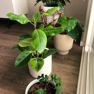 お誕生日の朝! 気持ち良いお天気でなんだか とっても良い気分です🌷 📸今朝の写真です。 *ユーカリ 先日新宿のgreen gallerygardensさん からお迎えし、植え替えをしました! ハートの葉っぱが可愛くて、新芽もいっぱい出ています🫶 *姫モンステラ 先日もアップしましたが育ち盛りなようで どんどん大きくなってるところです! *フィカス 100円ショップのすみっこにいたちっちゃい子。思わず買ってしまいました😂 どれくらい大きくなってくれるのかな?と 少し実験的ではありますが、うちに馴染んで育ってくれますように。期待してなかったけど根は思ったより張っていて、元気でした! *シェフレラ 一番奥は私のお気に入りでもある斑入りのシェフレラちゃん! この中だと圧倒的パイセンですね^ ^ 新芽が上がっていて更に大きくなってます
