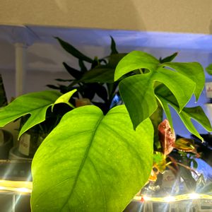 おはようございまーーす😊🪴🪴🌿🌿🍀 🌸 我が家のライトアップされてる💡💡💡 姫モンステラさんです。🌿🌿🌿 新芽が出てきて 🌿🌿 ようやく ひらきました🍀🍀🍀🍀 きれいに、 はっぱ 割れてます 🌿🌿🌿🤗 これからは、水切れが しんぱい😫 良い光景です🤗💡💡💡🪴🪴 名前を つけようかなぁ~~🍀🍀🍀