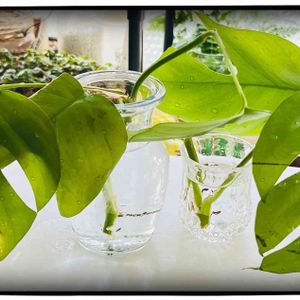 riiin@さんから頂きました✨(*'꒳'*) 姫モンステラ🌱 発根するまではメネデール水に浸かってもらいます🎵 お手紙もありがとうございます❣️(◍˃ ᵕ ˂◍) 大事に育てます✨(*´꒳`*)