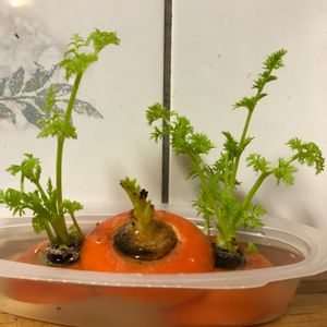 ニンジンのヘタ3兄弟💖 長男ー9日目 次男ー5日目 三男ー2日目 彩り用スプラウト💖