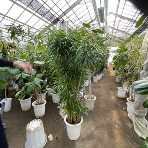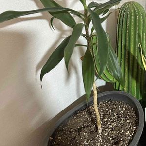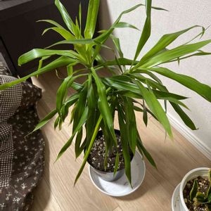 植物名:ドラセナ 科名:リュウケツジュ科 属名:ドラセナ属 原産:熱帯アフリカ 熱帯アメリカ [サイズ] 全体の高さ:53.0cm 全体の幅 :44.0cm 鉢の高さ :16.0cm 鉢の外径 :16.0cm 皿の直径 :16.0cm 皿の素材 :鉢と同じ [育て方] 日当たり:日向から半日陰 水やり :土が乾い頃に、底穴から水が抜けるくらいたっぷりと。 受け皿に水はためないように。 置き場所:日当たりが良く、風通しの良い明るい室内(夏の直射日光は避ける) 耐寒温度:5℃ 丈夫で育てやすく、インテリアグリーンとして人気のドラセナ。 枝の先から放射状に生える葉と、スタイリッシュな幹が人気のひと鉢です。 太い幹が存在感のある、特別な樹形のひと鉢です。 乾燥は苦手で、湿気の多い場所に強く、個性的な観葉植物として人気があります。 マットな質感の黒potにコーディネート。