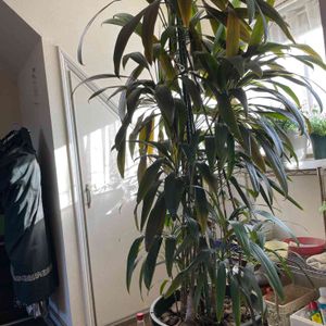 会社に届いたお祝いの観葉植物です。名前がわからなくて育て方に困っています。 有識者の方いらっしゃいましたらどうか名前を教えてください。元気がなくてかわいそうです😢