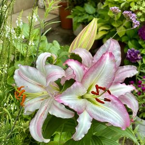 🌿ユリ[オリエンペット]リップグロス🌿💄 今年のユリはこの子だけ。 最初の一輪が開いてすぐ撮りました😊🤳 ふちにピンクのふちどり🩷 カサブランカの香りがします💕 咲き進むにつれて花色が変化するユリです。 2024.6.25撮影