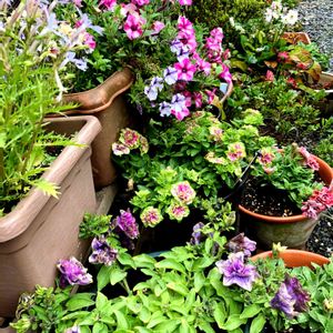 おはようございます⌣̈⃝♡ ネモフィラの鉢殆ど裏に移動 サフィニアコーナーにしました。 月曜日花ひろば二割引き。。。 行こうかな 仕事帰り。。思案中