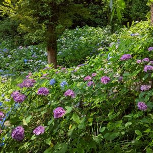 今日のお花 アジサイ💙 明け方の強い雨音で、早くに目が覚めてしまいました☔ 鎌倉長谷寺の紫陽花は色とりどりで見事です🤗