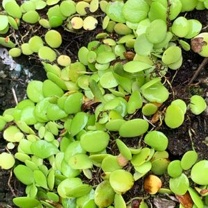 🟨マメヅタ属 マメヅタ🟩 丸っこい葉と、土ではなく木や石に着生して育つ変わったシダのマメヅタです。日本にも自生していますが、流石に誰かの山から取る訳にはいかないので、園芸店で購入しました。 私は以前サワガニ飼育に使っていた溶岩石に少し水苔を置いて、その上からマメヅタを植えて育てているのですが、これとんでもなく成長が遅くて、活着するまでに結構時間がかかりました。今は多少引っ張っても取れないくらいにはくっついたし、葉も増えていますが、最初は取れないように糸でも巻いておいた方がいいですね。 管理方法は、自生地通り日陰において、溶岩石はすぐ乾いてしまうため、受け皿に水を少しためて湿度と乾燥を防いでいます。 写真は雨上がりの晴れ間の様子で、日に透ける葉の明るい黄緑色と、まだ残る雫がキラキラと光ってとても美しいです✨ 写真2枚目はおまけのコツボゴケ🌱 アカエイと申します。ハオルチアの写真を主に、いろんな植物を投稿します☺️いいね、コメントいつもありがとうございます👍とても嬉しいです。