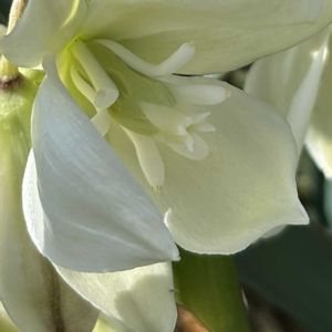 1年に数回開花します🎶 細長く鋭利な刀状の葉が 多数集合して 放射状に広がる。 葉の中心から長い花茎が 真っ直ぐに伸びて分枝します 厚葉君が代蘭 キジカクシ科 (あつばきみがよらん)