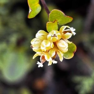 淡い緑色か黄色の小さな花 (直径約3~4mm)です 花後にできる半透明のベル型の 部分は果実です。 正確には〰︎ 中心にある黒い小さな種子である ガク片が多肉化して 半透明の ゼリー状になったものです🎶 🌿小さくてツヤのある葉をつけた 茎が横に這って長く伸びる🌿 ワイヤープランツ タデ科