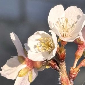花は 一重小輪 直径2、5cm 花期は 11~12月および4月です。 秋から初冬の気候の変化による、 寒さにより〰︎咲き始めます🎶 冬桜(ふゆざくら) バラ科