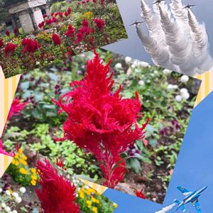 ~ 無料施設のコラボ企画❓️無料のガーデン🌱と無料の航空祭🛩️⑥ ~ 今日は山梨の勝沼庭園からは真っ赤なケイトウ🔴、入間基地航空祭からはスモークを出しながら飛ぶブルーインパルス💨