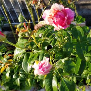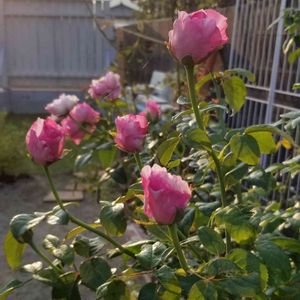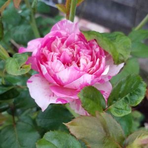 エドゥアールマネ🌹 絞りの薔薇が欲しいなぁと思っていた時に偶然出合った薔薇🌹 ホムセンやネット、園芸センターとかではないお洒落な雑貨も扱うお店。 税抜きで確か4,280円😱 私にはいいお値段💦 小ぶりだったけど、可愛いお顔に惹かれて💓 去年の新築戸建てで憧れの地植えをしたら一気に大きく成長✨ あんなか弱かった薔薇が 私の目線まで成長🎶 どんどん蕾つけるから摘蕾追い付かなくて諦めちゃった😜