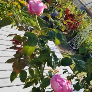 薔薇エドゥアールマネ🌹 春みたいにどんどん咲いてくれてる✨花も大きいの😊 マイホームに引っ越してきたばかりの時は小さかったのに、1年で倍以上大きくなりました🎵