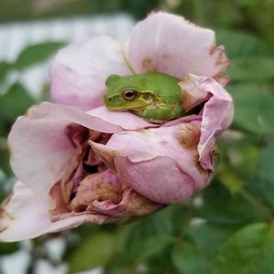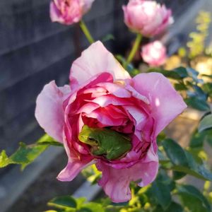 我が家の🐸サンは、 薔薇のベッドがお気に入り☺️ スイートルーム料金頂きたい😂