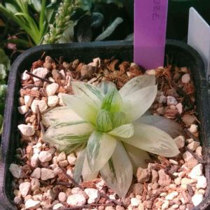 ハオルチア(♀[?]巨大赤線レンズオブツーサ×♂[?]べヌスタN1) 整理用のラベルが書いてありますね。ベヌスタN1×巨大赤線レンズオブツーサ。あの頃の幻想的な感じが、、大苗になっても出ればいいのですが、腕によりけりでもないし、運もいるし? 早くも違ってきました^^ それも、ありですね。分かんねーだろな? 4cmポットなので、早めに5月中旬までにはひと回りふた回り大きなポットに植え替えをしたいです。