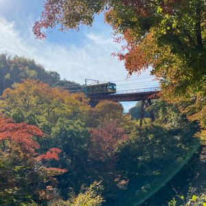 お疲れ様です。\(//∇//)\ 京都男山、神應寺奥之院から🍁🍁 ケーブルカー🚃が見えます。上りです。