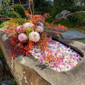 お疲れ様です。\(//∇//)\ 昨日19日京都府八幡市にある「相槌神社」⛩に行きました。 「花手水」です。