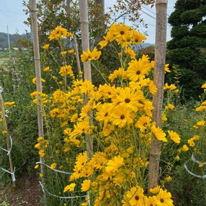 黄色い花が咲きはじめました。昨年元気よく咲いているのを見て畑の隅に植えたのがやっと開きはじめました。