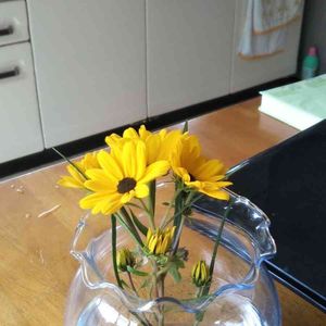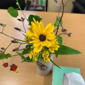庭の柳葉向日葵🌻 オリーブオイルの空き瓶に挿しています(╹◡╹)