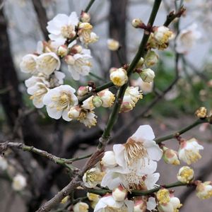今朝の白梅🌸 白梅、紅梅はそろそろ満開近しです🥰