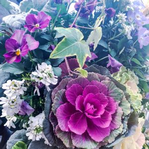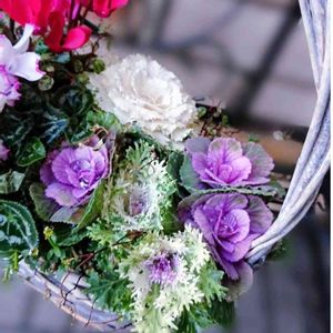 2019 お正月の葉牡丹に 庭のお花を足しました(✿ꈍ。 ꈍ✿)ポッ