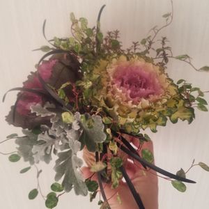 お外の葉牡丹リースの雰囲気をリビングにも… ブーケ風にしてみました🎵