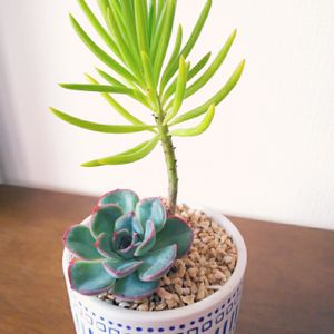 松のような100均多肉が気になって買ってきました。名前は無かったのですが、セネキオ美空鉾でしょうか?? 100均多肉と100均鉢で 和風にしてみました☺️ ↑ 松鉾と教えて頂きました。
