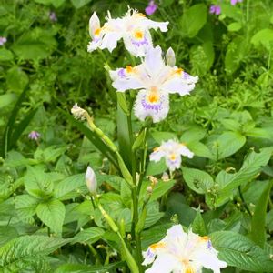 シャガとヤマアイ 思ったより長い期間、多くの花が咲くシャガ、目立たないヤマアイに囲まれて…