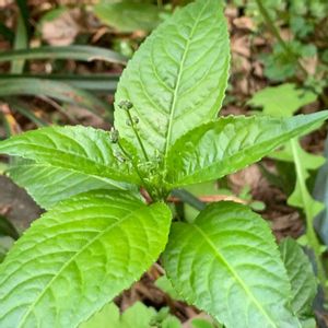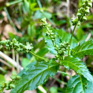 名前がわかりません。 どなたか教えてくださると嬉しいです。 ⬅️ 花らしき所を拡大しました。 グーグルレンズは スモール バルサム とでます。 ヤベフウさんにヤマアイと教えていただきました。 花様のものの確認もしてくださいました。 また やくしさんに不思議に思っていた花様のものの説明もしていただきました。(コメント見てください)