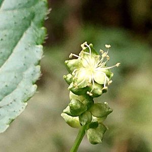 山藍 トウダイグサ科 ヤマアイ属 分布 本州〜沖縄 花期 4月〜7月 多年草 在来種 山地の林内に群生する 雌雄異株 時に 同株 高さ 30〜40cm 中国からタデ科の藍が(タデアイ)が渡来するまでは日本における最古の植物染料の一つだがインディゴの藍とは異なり緑色に染まる ⬅️ 雄株 雄花 ➡️ 雌株 雌花