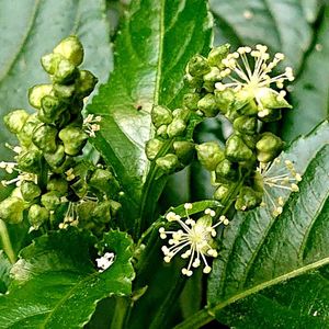 ここは山ではないのですが山藍の雄株🌼 何者かに味見をされております💦