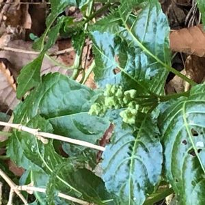 ヤマアイ*山藍① トウダイグサ科 山際の少し暗い所に群生しています。 草丈は30㌢程。 お花より青々とした葉っぱの 方に目がとまります🌱 現在の藍染めが渡来する前 日本における最古の染色に 使われた植物だそうです。 近くの低山を歩いて🤳