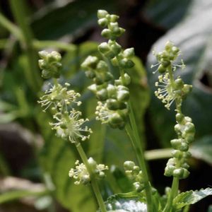 3月19日撮影 赤塚植物園 万葉薬用園 フクジュソウもセリバオウレンも もう実になっていましたが、 この花は今から咲きますね。 ヤマアイ(山藍) トウダイグサ科ヤマアイ属 雌雄異株で、これは雄花です。 花弁と萼片が3枚ずつ。雄しべが多数。 ちょっと全体のピントが合っていなくて残念ですが、雄しべには合っているかな? 葯が芽のような形で可愛らしいです🥰 以前、雌花序も小石川植物園で撮って投稿した記憶がありますが、花の時期ではなくて実だったかもしれません。 確認してみます😅