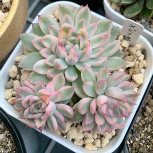 🏷️錦の日 参加しまーすヽ( ・∀・)ノ 左は正式の #メビナ錦さん 右は多肉植物食堂さんが #メビナ として売っていた多肉さん… メビナ? メビナ錦ちゃうん? メビナ錦ならラッキーちゃう? 😍💕