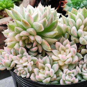 おはようございます🙋 錦の日参加させてください✨ ネックレスの日まで待てなかったマーブルネックレスさん✨ 2週間で白い赤ちゃん増えました✨ こっから緑が入ってくるのでしょうか? ピンクの子も白い子もめっちゃ可愛い癒しです✨ フェスでお迎えした錦のエケさん✨ YouTubeで見て狙ってました😆✨ メビナ錦さんは欲張って双子の子にしましたが勇気がなく一緒に植えつけました✨ マカベアナ錦さんは手前の葉っぱがピンク一色ですが大丈夫なんでしょうか💦? 薄葉の子やし心配です🌀 錦の子はやっぱり可愛いですね🎵