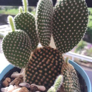 バニーカクタス 気が付いたら 子供が顔だしているではありませんか。 成長するのは 遅くてあまり判らなかったのですが …… これからの成長が 楽しみです😄✌️